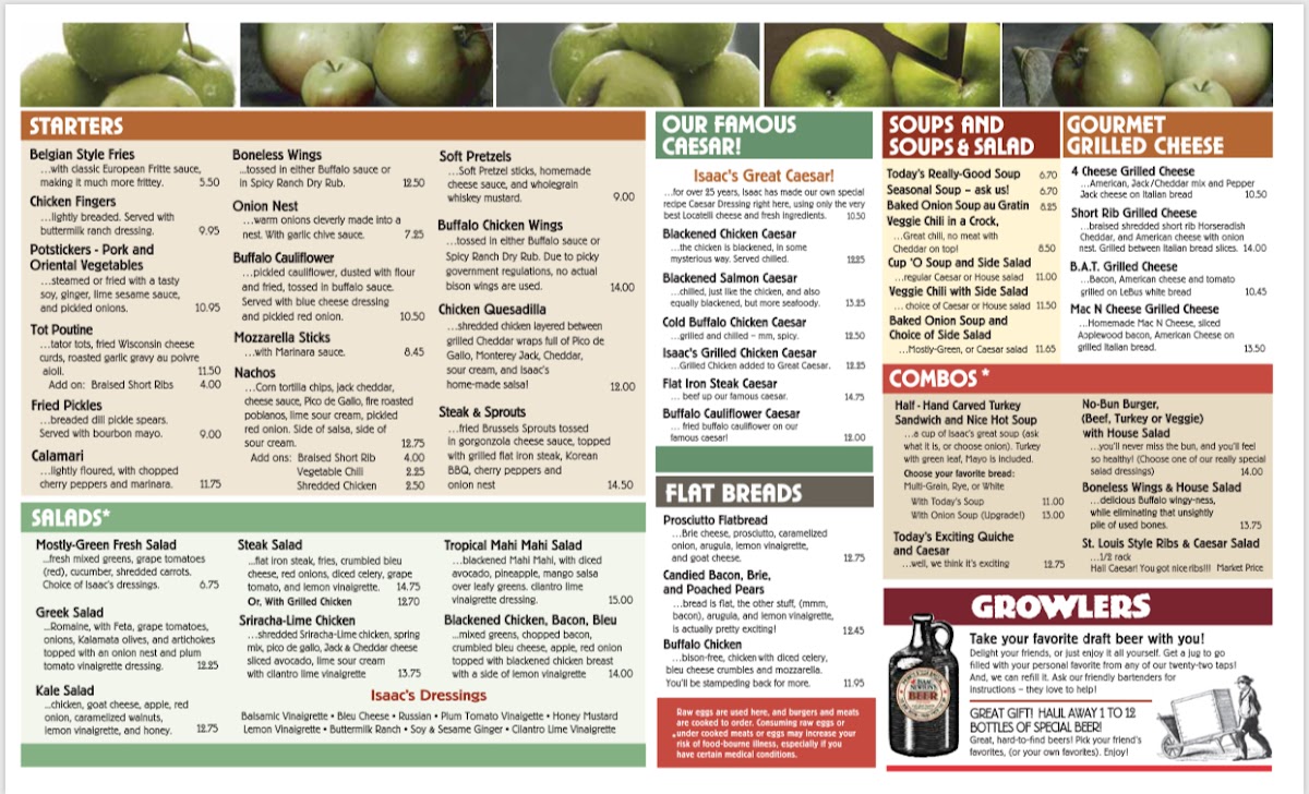 Fresh Mixed Greens, Grape Tomatoes, Cucumber, Shredded Carrots. Choice of Isaac's Dressings.
