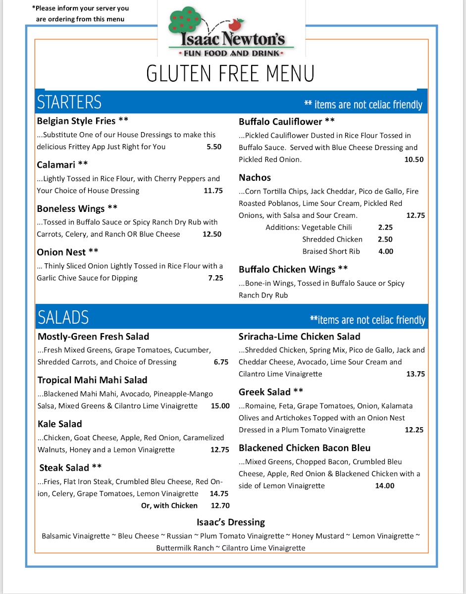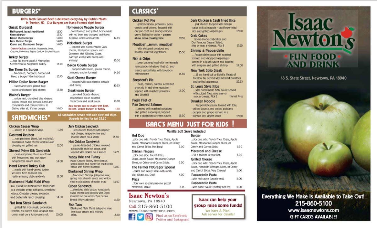 The Isaac Newton's Bar & Restaurant Menu at 18 S State St, Newtown, PA, is your go-to place for an unforgettable dining experience. Whether you're stopping by for a quick bite or planning a special evening out, there's something for everyone. The menu features a delicious blend of classic American comfort food and inventive dishes, all made with the finest ingredients.
